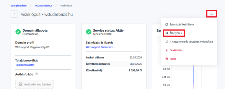 Az adminfelületen keresztül lehetőséged van arra, hogy egy adott domaint az összes tartalommal és levelezéssel együtt áthelyezz egy másik tárhelyre ugyanazon felhasználói fiókon belül.