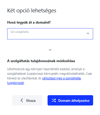 A felugró ablakban válaszd ki a cél tárhelyet, majd kattints a Domain áthelyezése gombra.