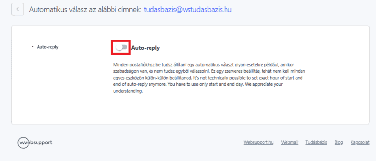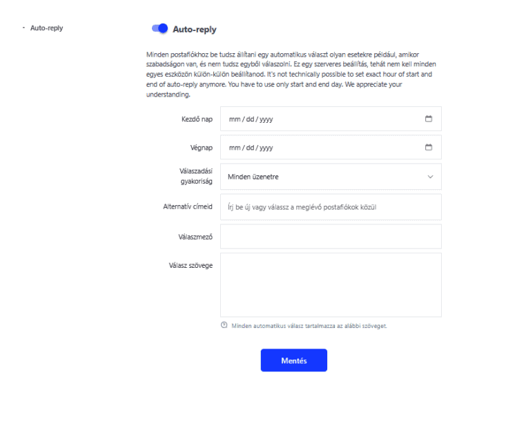 Az aktiválás után pedig be tudod állítani a válasz e-mail részleteit.