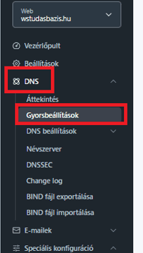 - A bal oldali menüoszlopban válaszd ki a DNS / Gyorsbeállítások menüpontot.