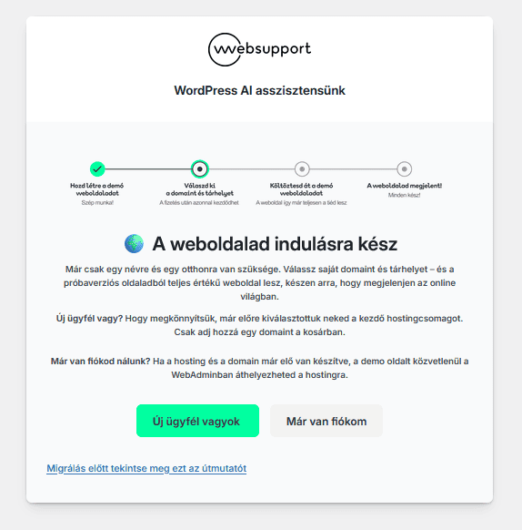Ha új ügyfelünk vagy, a folyamatot egy újonnan vásárolt tárhelyre és újonnan regisztrált domainre is el tudod indítani.