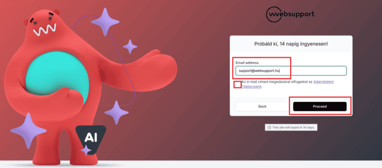 A demó oldal URL címét abban az e-mailben találod, amit közvetlenül neked küldtünk, amikor létrehoztad a demó oldalt weboldalunkon keresztül.